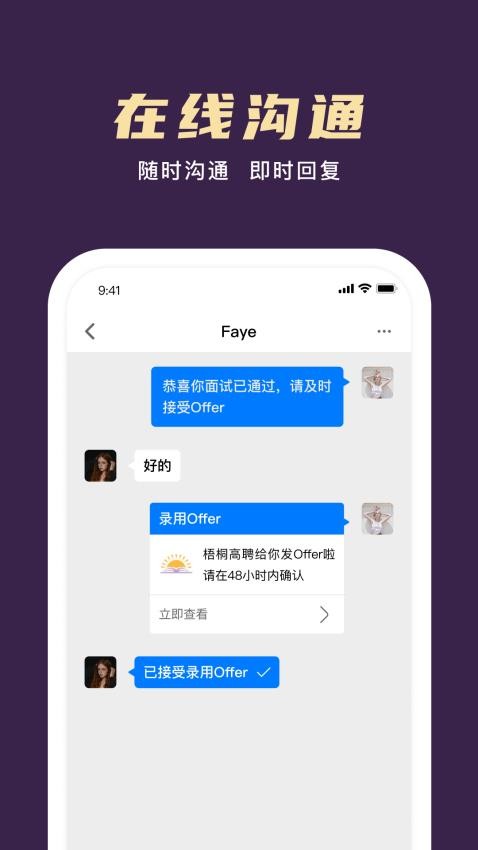 3、平台统一推送面试录用相关通知,求职者可及时接收入职消息,快速响应面试安排,顺畅完成入职到岗各项流程。