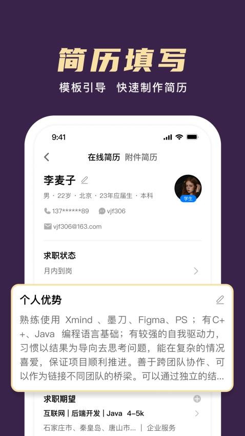 2、搭载智能岗位匹配机制,精准对接个人能力与岗位要求,完整展示岗位详情,清晰标注薪资职责任职条件各项内容。