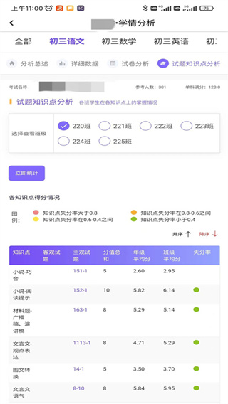 3、学情分析会整理出多项数据,方便从不同角度观察学习表现,判断会更有依据,也更容易发现问题所在。