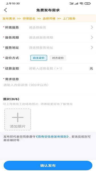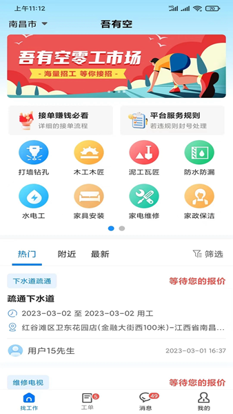 吾有空是专为零工群体打造的灵活用工求职平台,主打线上接活与安全结算服务,搭建零工求职者与雇主双向对接渠道,开放免费招工求职信息发布通道,全程不收取任何服务费用,整合多行业零工岗位资源,支持工种分类区域筛选简历投递收藏工单留存等功能,搭配实名认证保障信息真实,简化求职应聘流程,高效解决临时找活雇主招人双向需求,打造便捷正规有保障的零工市场服务环境。