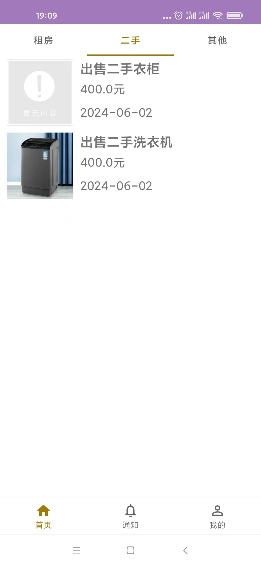 3、点击底部导航栏【通知】选项,进入通知页面查看各类信息(如商铺转让、优惠活动等)。