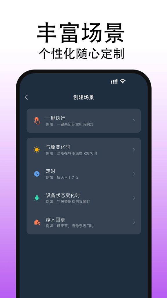 2、APP内置丰富的智能场景模式,用户可以根据不同场合选择相应的场景,如回家模式、离家模式、睡眠模式等,一键切换,方便快捷。