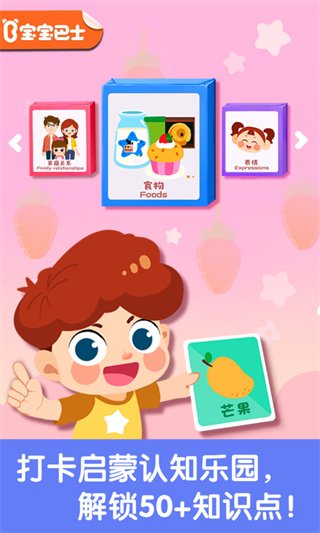3、加入基础英语学习,在认识事物的同时接触简单单词,启蒙体验会更加丰富多样。