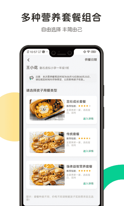 1、进入软件首页后,点击底部【我的】按钮进入个人页面,该页面可查看【订餐交费】-【透明厨房】-【食材信息】等核心功能入口。
