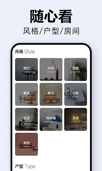 1、打开软件后,进入发现页面,浏览各类装修效果图,点击目标效果图,进入风格选择页面。