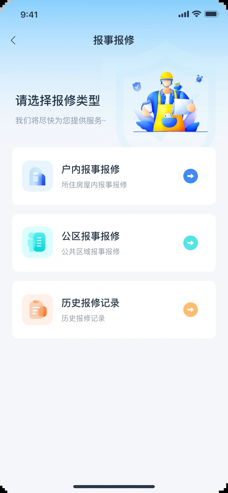 3、报修服务响应及时高效,覆盖室内与公共区域设备,保障居住环境稳定,提升整体居住舒适度。