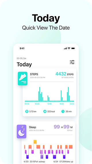 1、系统会自动记录自身的每日运动数据,卡路里消耗,心率以及睡眠质量以助于了解身体状况;