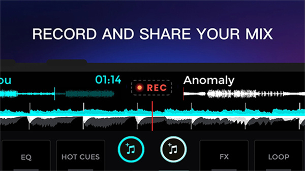 1、支持了录制并分享机制,用户可以将制作好的混音或DJ发送给好友,同时也能到社交区域发布作品;