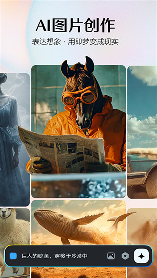 4、输入文字描述即可生成创意画面,短时间就能得到完整作品,灵感表达更加快速自然,创作过程轻松有趣。