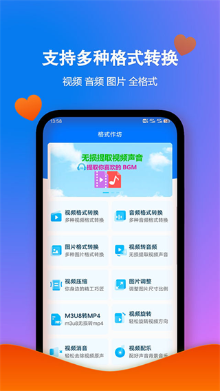 格式作坊有多种媒体文件处理方式,视频、音频、图片等文件类型的格式转换与编辑处理,M3U8地址转换MP4、本地视频压缩、视频旋转、背景音乐添加、视频静音处理等操作均可完成,还可进行音频提取、视频转音频、图片尺寸像素调整等处理步骤,输入M3U8路径即可生成MP4文件保存到本地,视频中的音乐也能单独提取保存为常见音频格式,日常视频剪辑、素材整理、文件格式转换等使用需求,移动设备也能快速完成多种媒体处理流程。