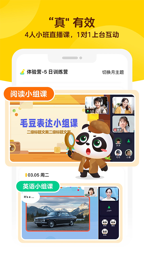毛豆爱学是一款面向3-8岁儿童的分级阅读与表达启蒙工具,丰富的故事和主题课程培养“听说读写”能力,经典与热门读物,并以生动图片和视频呈现,结合互动学习场景帮助孩子更易理解和记忆,利用AI技术支持直播教学,根据儿童兴趣与反馈灵活调整教学方法,实现个性化差异化启蒙学习
