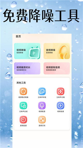 视频降噪App是一款以音视频处理为核心的工具应用,解决录制内容中常见的背景噪音问题,让声音更加清晰可用,对视频和音频文件进行降噪处理,适用于日常录音视频剪辑以及素材优化等场景,音频提取视频裁剪批量格式转换等功能,覆盖MP4AVI MKV等常见格式,方便在不同设备或平台之间使用,并具备环绕音生成声道分离与合成立体声处理能力,还可进行视频配乐变速以及音频变调等操作,满足多种音视频处理需求。