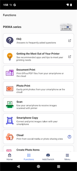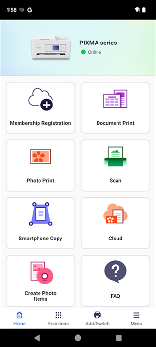佳能打印App专为佳能打印机和多功能设备打造,可通过Android终端直接打印照片、文档,读取扫描数据并上传至云存储,Microsoft Office文件、PDF文件和网页打印,兼顾日常办公和个人使用需求,PIXMA系列或SELPHY系列设备可实现完整打印和扫描功能,让手机和平板直接成为高效打印工具,随时随地管理文档和图像,提升工作和生活的便利性。