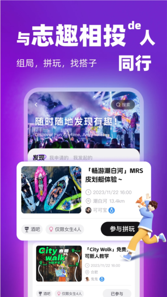 2、精准结合地理位置与个人喜好,智能推送周边活动内容,拓宽线下线上双向结交渠道。
