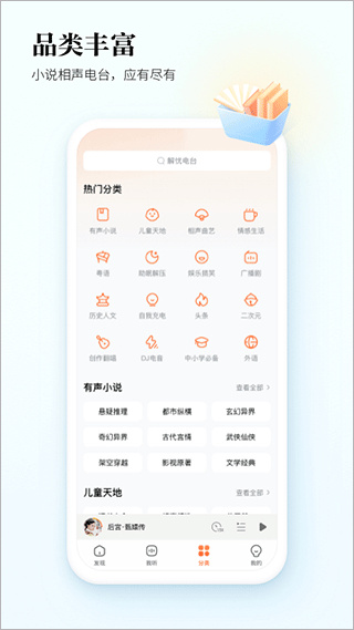 4、听书内容种类丰富,不同类型故事都有整理,想听什么风格基本都能快速找到对应内容使用。