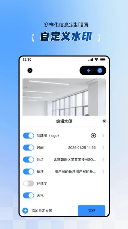 1、提供多种适配不同工作场景的水印样式,支持调整水印内容,满足个性化的记录需求。