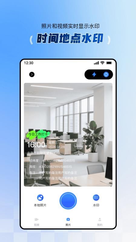 4、自带拍照录制功能,可以直接完成拍摄添加印记的全流程,不用切换多个工具完成操作。
