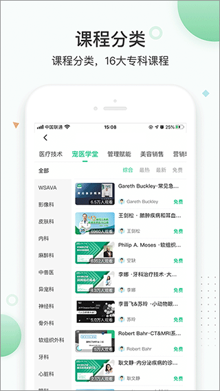 1、兼顾兽医专业深造与宠物主人科普学习,打造覆盖行业从业者与养宠人群的综合学习平台。