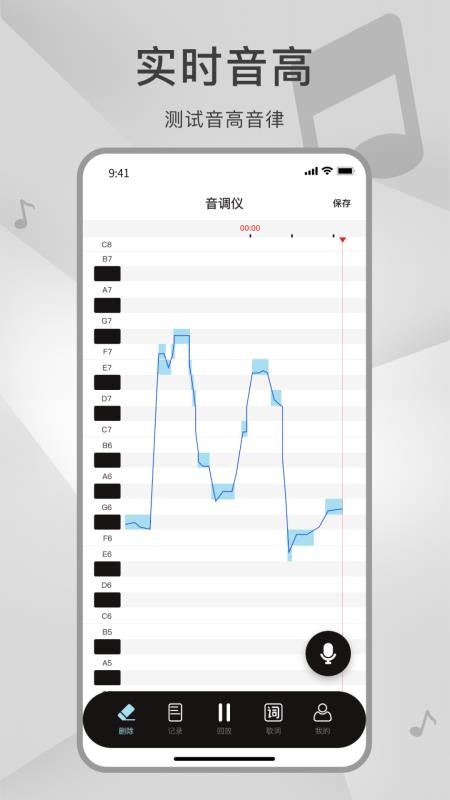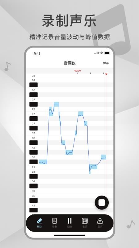 2、声乐练习时可直观看到实时音调变化,快速调整发声状态,大幅提升日常练声的效率。