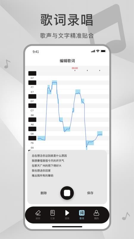 4、可自主添加修改对应唱段的歌词内容,编辑完成后随时保存,练唱时同步显示。