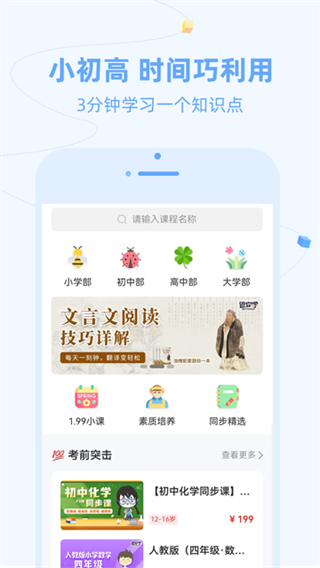 2、轻量化高效学习模式降低学习压力,用精简时长完成知识吸收,以高效方式掌握更多学科内容。