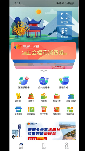 1、进入软件后点击首页的潇湘公共交通卡。