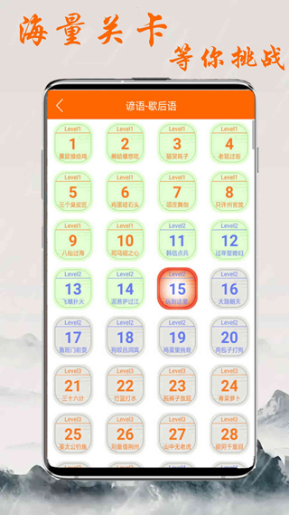 1、在趣学习主界面,点击【猜谜语】模块,进入关卡列表页。