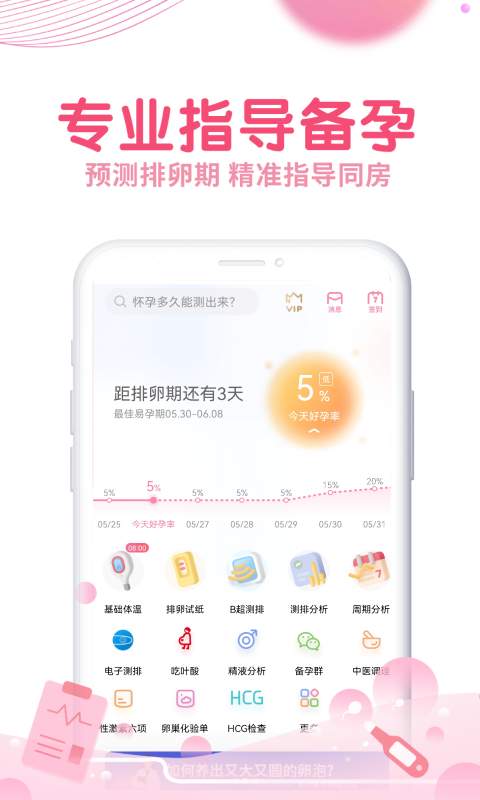 2、数据准确:APP采用先进的算法,准确计算用户的排卵周期和怀孕几率,提高备孕成功率。