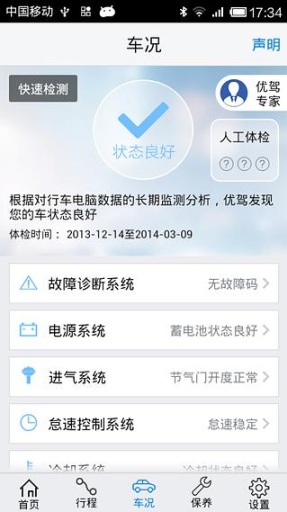 1、"优驾"界面设计简洁大方,色彩搭配舒适,即使在强烈的阳光下也能清晰辨识。