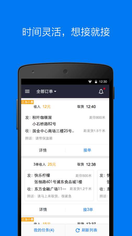 1、达达骑士版提供了丰富的服务类型,包括但不限于外卖配送、快递代取、超市代购等,满足用户日常生活的各种需求。