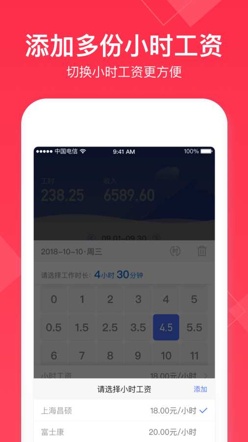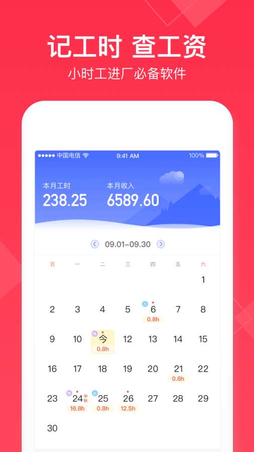 1、“小时工记账”提供了便捷的记账功能,用户只需输入工作时长和时薪,APP便能自动计算出当日收入。