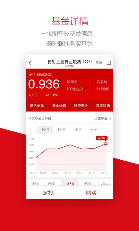 2、交易便捷:用户可在APP内完成基金申购、赎回、转换等操作,支持多种支付方式,让投资更便捷。