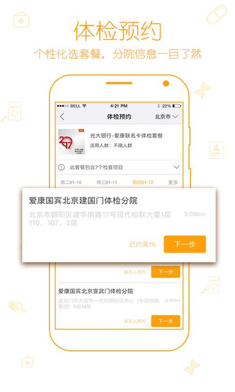 3、用户还可以在APP内预约体检服务,选择合适的体检套餐和时间,享受一站式的健康管理服务。