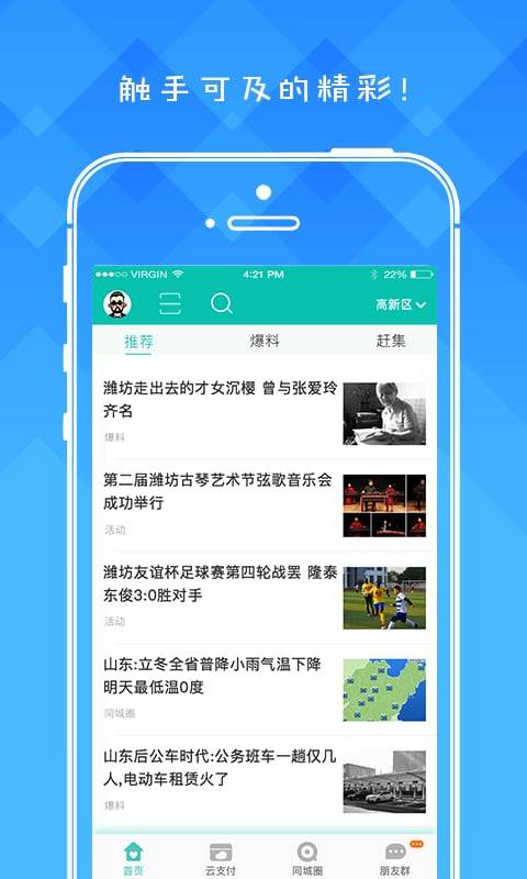 1、"潍V"采用简洁清新的界面设计,操作便捷,用户无需复杂设置即可轻松上手。