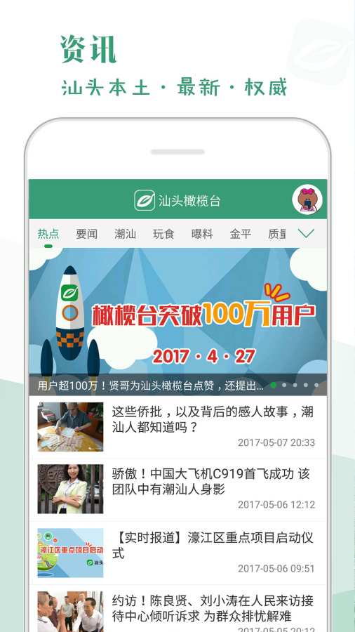 汕头橄榄台,作为潮汕地区首屈一指的新闻资讯APP,以其全面、及时、深入的新闻报道和丰富的本地资讯内容,吸引了广大潮汕乡亲及关心潮汕发展的各界人士。这款APP不仅整合了汕头各大新闻媒体的资源,还独家推出了一系列原创栏目,让用户随时随地了解潮汕地区的最新动态。