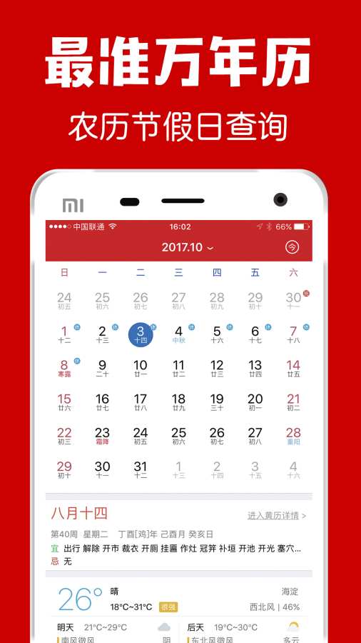 1、中华日历极速版界面简洁大方,操作流畅,让用户轻松上手。