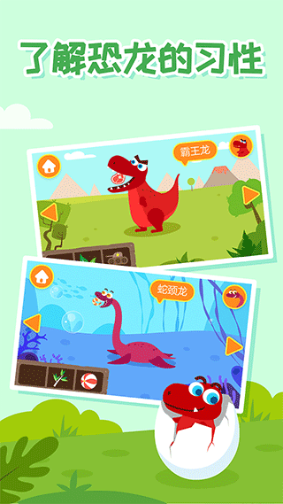 3、新增恐龙场景,带小朋友认知更多恐龙生物,强化恐龙认知;