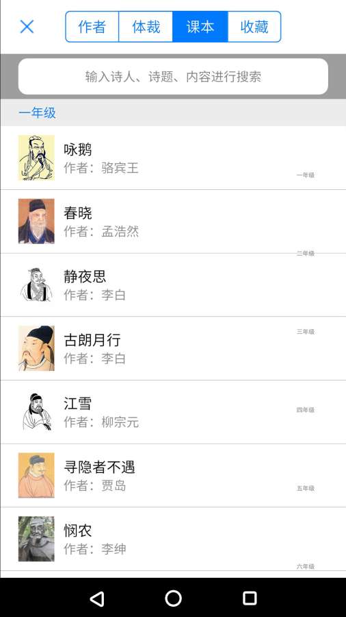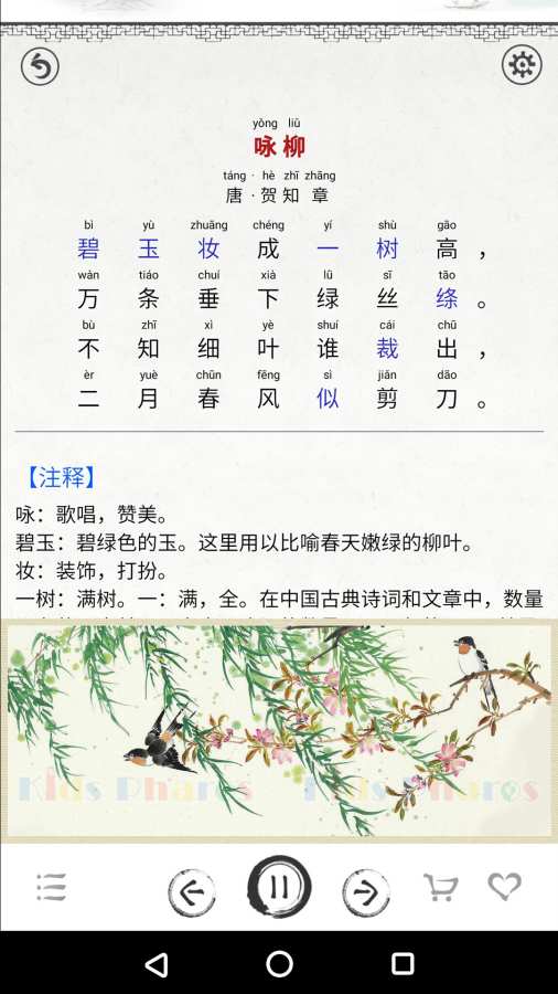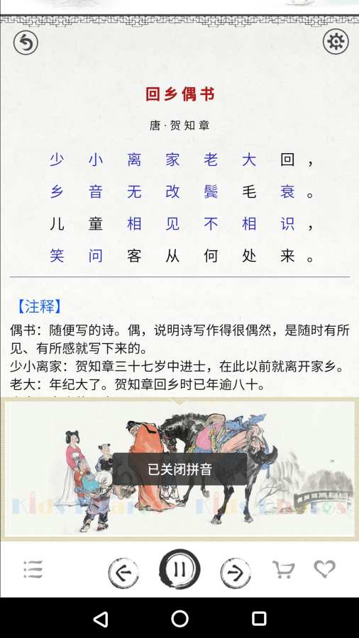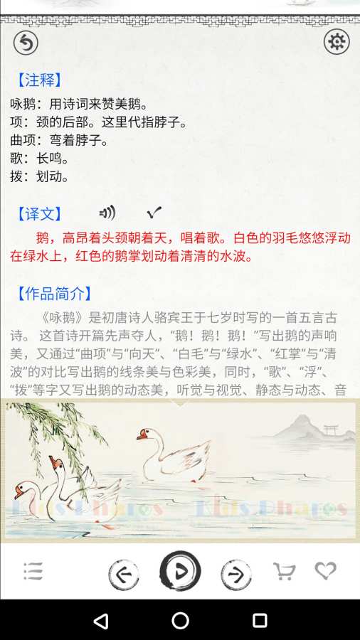2、古诗朗读:每首古诗都配有专业的朗读音频,帮助学生正确把握古诗的韵律和语调。