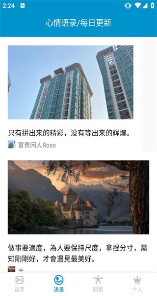 1、打开健身教学软件,界面显示课堂教学相关内容,点击底部明星选项,切换至健身明星风采页面。