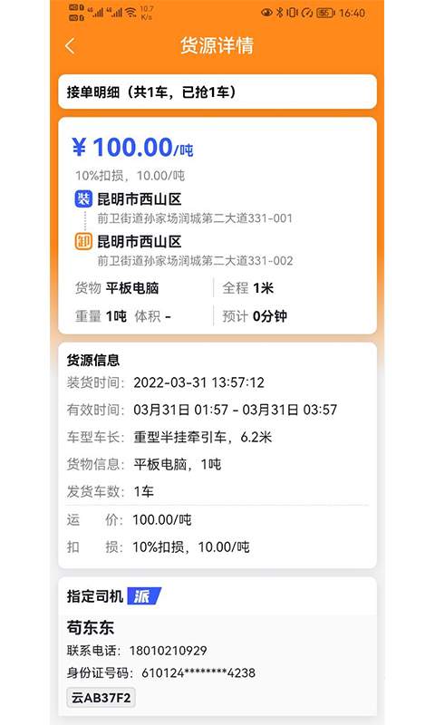 2、该APP支持实时订单跟踪,货主能够随时查看货物的运输状态,确保货物安全及时送达。