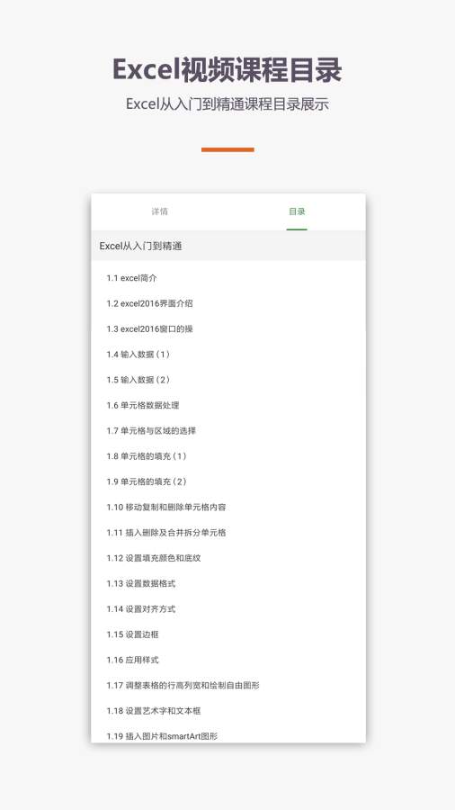 1、爱学Excel教程APP提供了从基础到进阶的全方位Excel课程,涵盖数据录入、格式设置、公式运算、图表制作等核心内容,帮助用户系统掌握Excel技能。