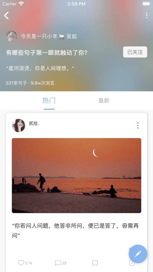 2、该APP的句子资源更新速度快,能够及时为用户提供最新、最热门的句子素材。