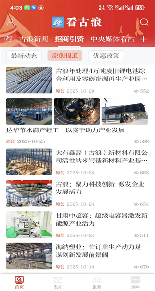 1、打开看古浪首页,点击古浪新闻选项,切换到古浪新闻板块,可查看当地相关的各类新闻内容。