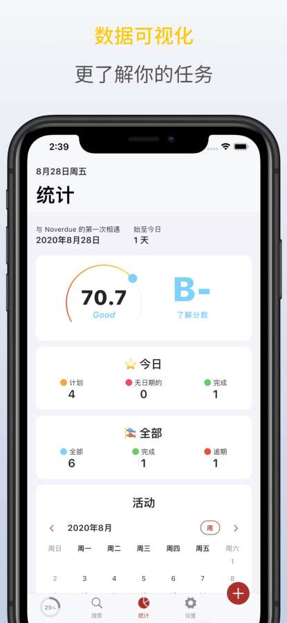 3、Noverdue还具备强大的任务统计功能,用户可以直观地查看自己的任务完成情况,以便更好地调整工作计划和生活节奏。