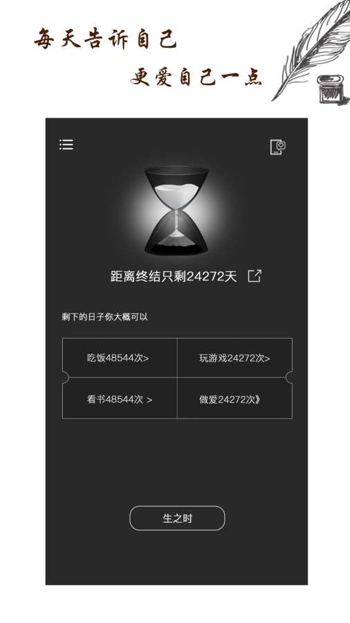 3、为了满足不同用户的需求,“时光生辰-余生简记”提供了丰富的自定义选项。用户可以根据自己的喜好调整功能布局,实现高度个性化的使用体验。