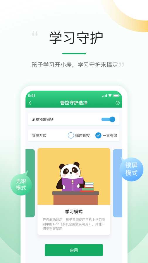 3、作为一款专注于孩子上网行为管理的工具,“熊猫守望家长”不断更新迭代,引入最新的教育理念和技术手段,致力于为家长和孩子提供更加完善的服务。