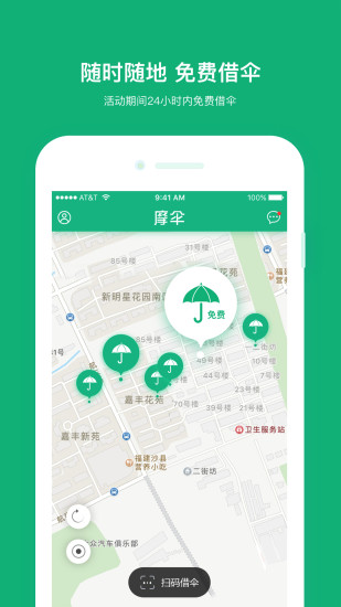 1、摩伞APP具备实时定位功能,用户可以通过手机轻松查找到附近的伞具借用点,方便快捷。