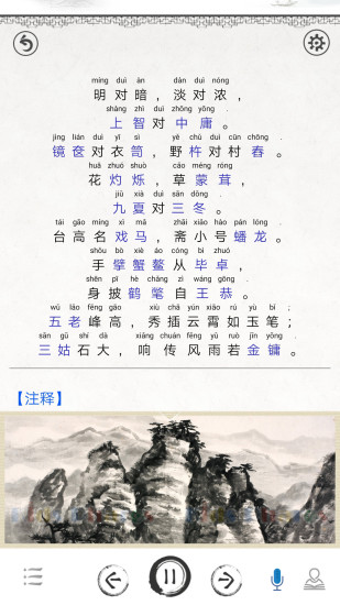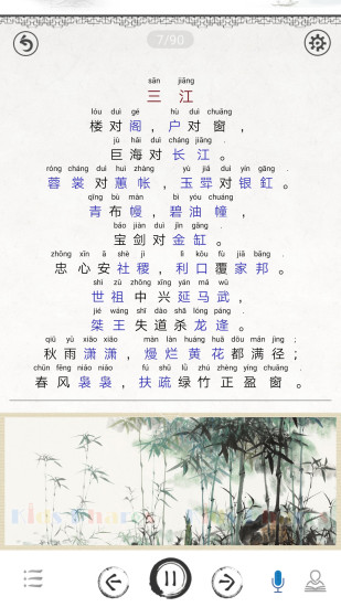 APP简介:声律启蒙图文是一款专为儿童设计的音韵启蒙应用,通过丰富多彩的图文结合方式,激发孩子们对声韵的兴趣。应用中融合了传统的声律知识与现代科技互动,旨在帮助孩子们在轻松愉快的氛围中掌握声韵规律,培养语言表达能力。声律启蒙图文,让学习变得有趣而高效,是孩子们成长路上的良师益友。
