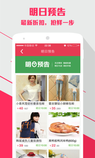 1、特卖疯抢APP提供实时更新功能,用户可随时浏览最新上架的特价商品,紧跟时尚潮流,不错过任何一个抢购时机。