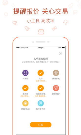 1、找纱网APP汇聚了众多优质纱线供应商,保证产品的品质与多样性,满足用户不同的采购需求。